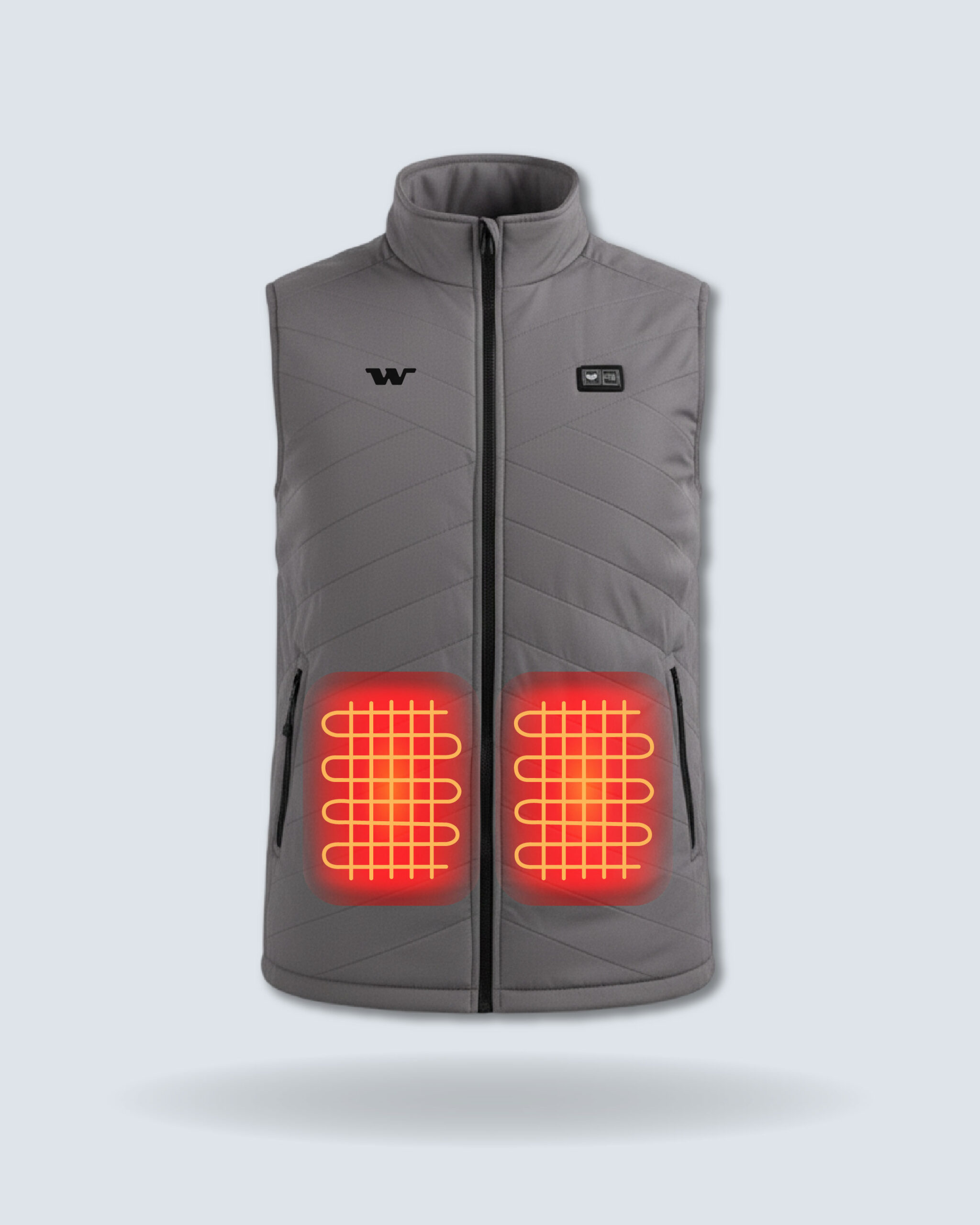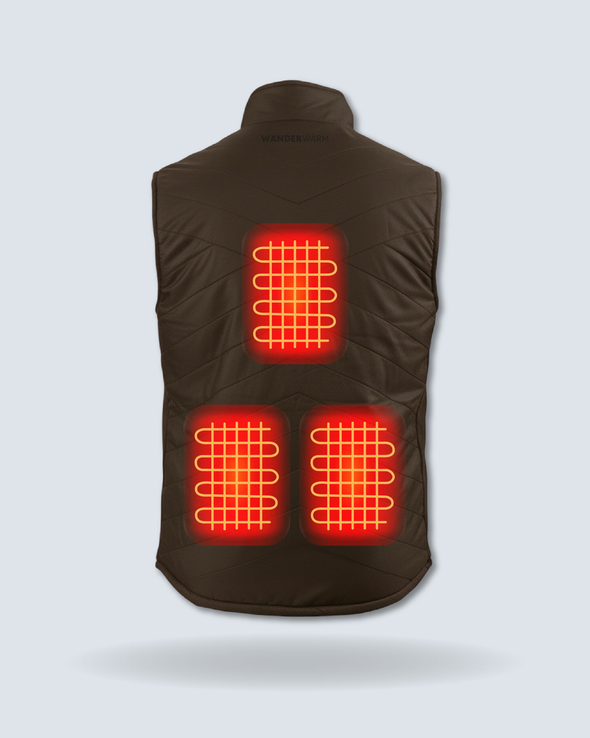 El botón con el logo de WANDERWARM activa la calefacción en la espalda.