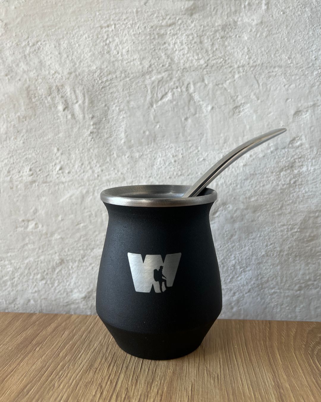 Incluye una yerbera de alta calidad con textura negra y acabado texturizado, diseño compacto y práctico con cierre resistente para mantener la yerba fresca y segura. También incluye un mate, hecho de acero inoxidable con acabado negro mate. El set se completa con una bombilla de acero inoxidable con detalles dorados.